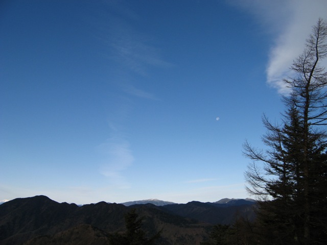 かすかに見える中央アルプス。天気が良く、月も出てます。