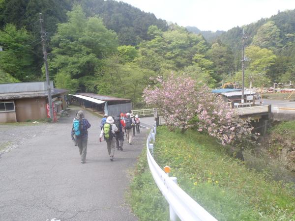スタートは西吾野駅からです。歩き出す前に靴ひもの結び方などガイドの加藤さんに指導してもらい、いよいよ歩き出します。季節は新緑で、きれいな花もあちらこちらで見えました。あと立派なタケノコも。