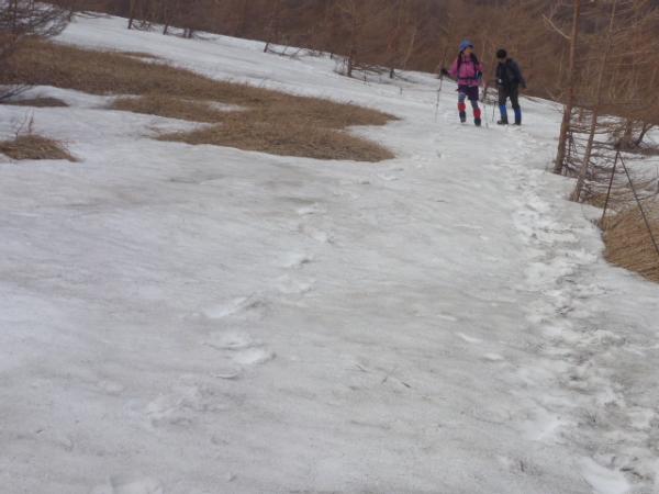 よく締まっていて凍結もなし。アイゼン不要レベル。