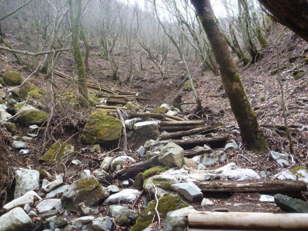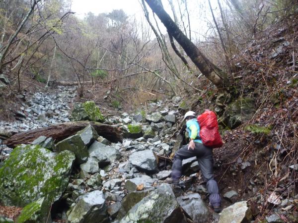 ここから一気に下ります。コースコンディションにも書いたようにちょっと荒れていて、また増水時は入らないよう注意看板があったように川沿いを歩くところも。これ、大雨が降っていたら完全に流れになりますよね。