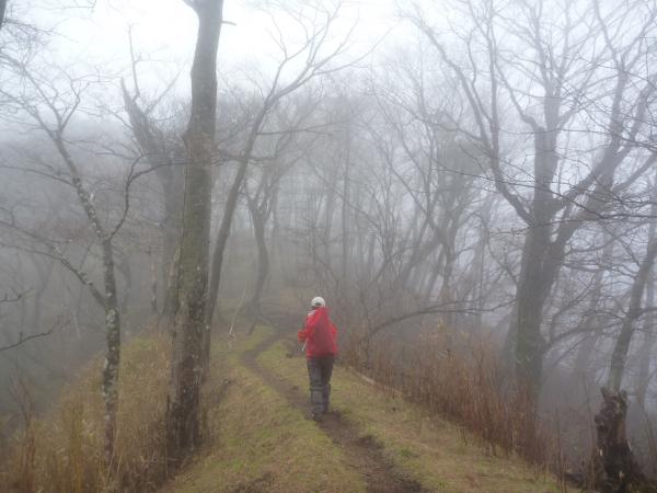 大室山山頂はちょっと広めの平らな山頂。でも今日は展望ほ望めません(泣)