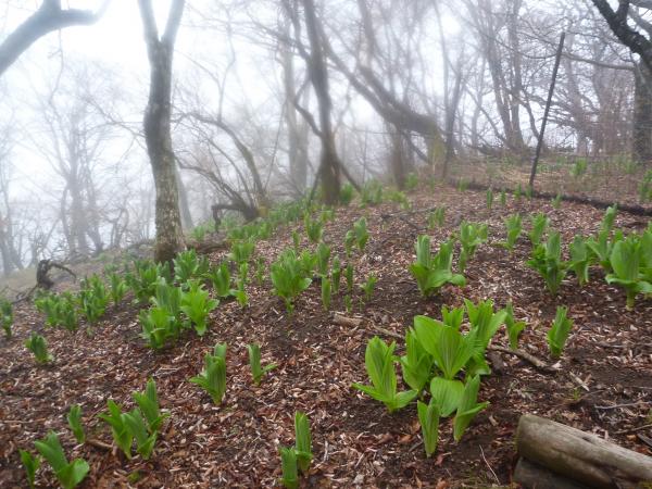 大室山山頂近くになるとコバイケイソウが沢山。まだ咲くのは先ですがこれが満開になったらすごいだろうな・・・というくらい沢山でした。