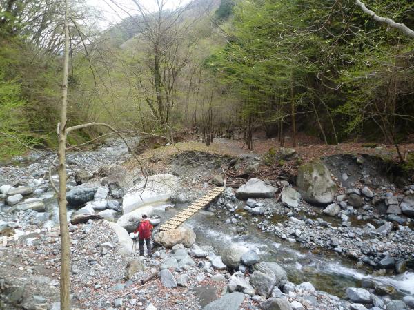 最後はまた河川沿い。何回か渡渉して林道終点。そこからは普通の道路を30分ほど歩きます。登山靴で歩く道路はキライ。でも歩かなくては。。。