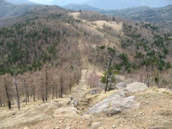 帰路の黒槐尾根も急な下りがないので膝にやさしく、のんびりと下山。
