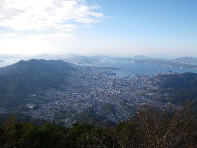 灰ヶ峰(はいがみね・737m)は呉駅からでもきれいに見える大きな山で独立峰。呉市街から広島湾が見渡せる夜景スポットとして有名で日本三大夜景の函館山より2倍以上の高さがあり、その夜景は劣らず美しい。