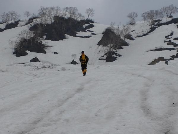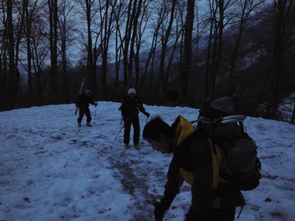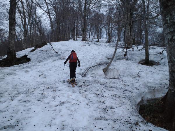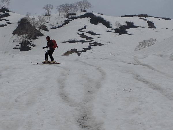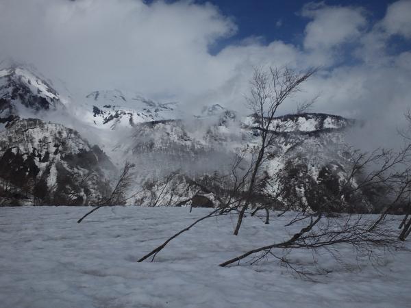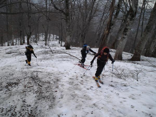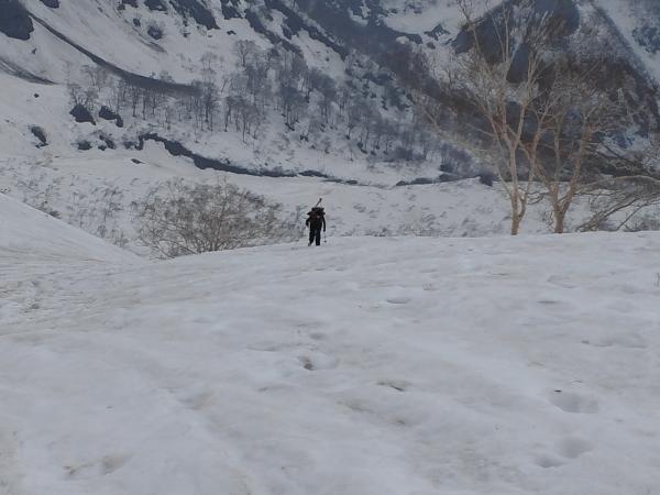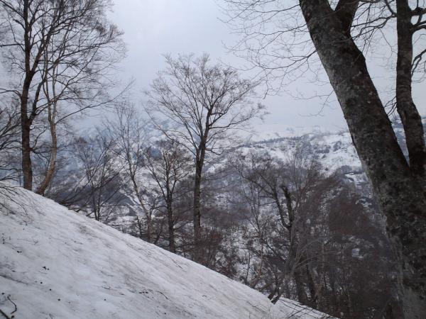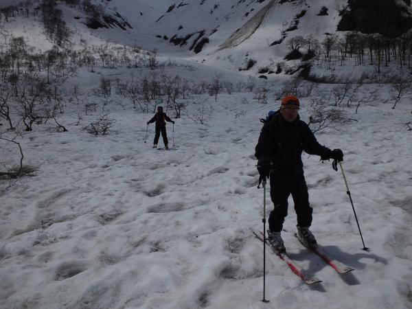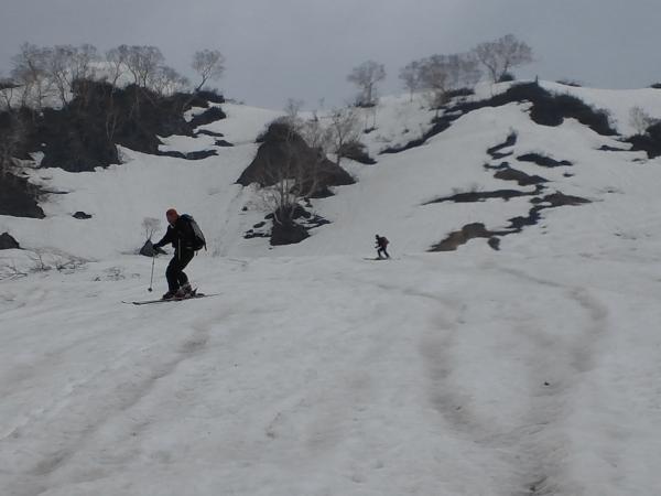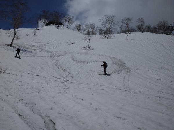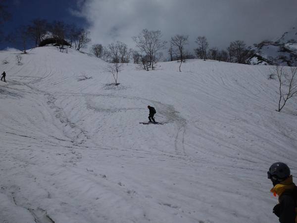 早めのスタート)順調に高度を上げ、小日向から滑降を楽しみ、鑓温泉に登り返します。