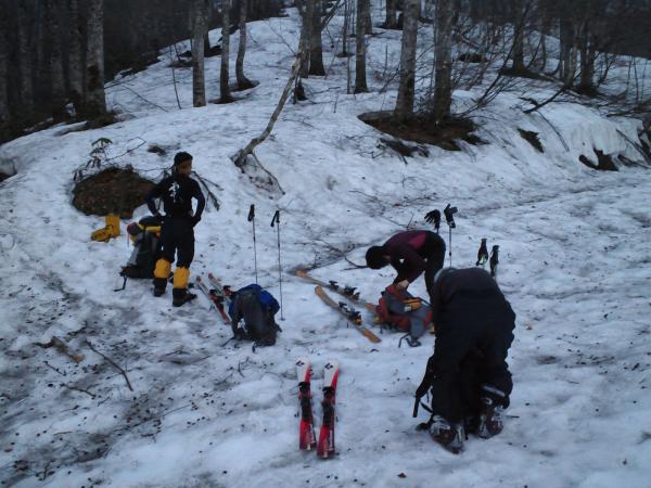 雪の中で、着替えるのは中々大変でしたが、全員着替え終わり、スキーに履き替え、下山します
