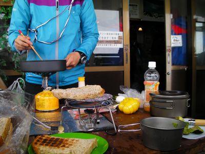 今回はいかに快適にのんびりするかというテーマで臨みました。のんびりするためには、春山の気候の変化に対応する装備が必要です。80リットルザックにアイゼン、ピッケル、ストックはもちろん、ショベル、プローブ、ビーコンも持って行きました。備えあれば憂いなしです!最近はどの道具でも軽量な物が出ているので、ザックはパンパンでも、思ったほど重くはなかったです。体力に応じた重さにするのは大事ですが、基本装備を怠るのは避けましょうね。