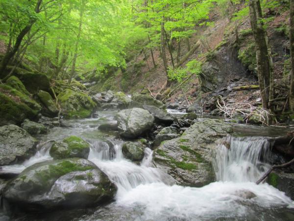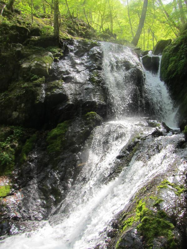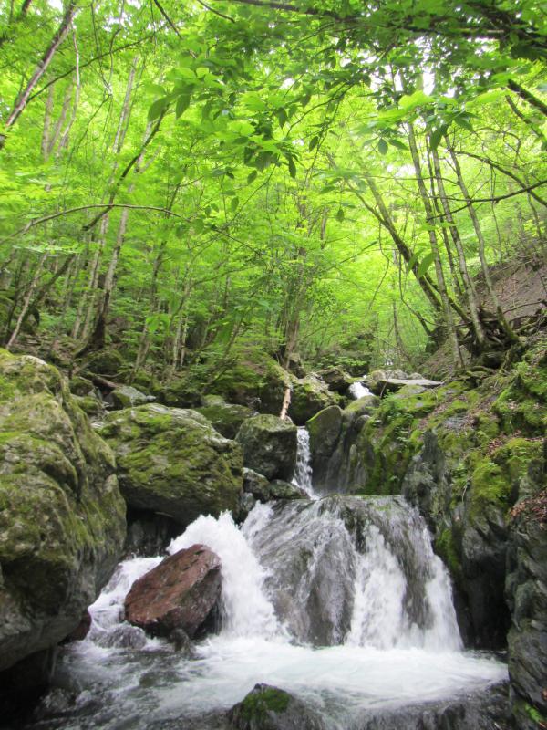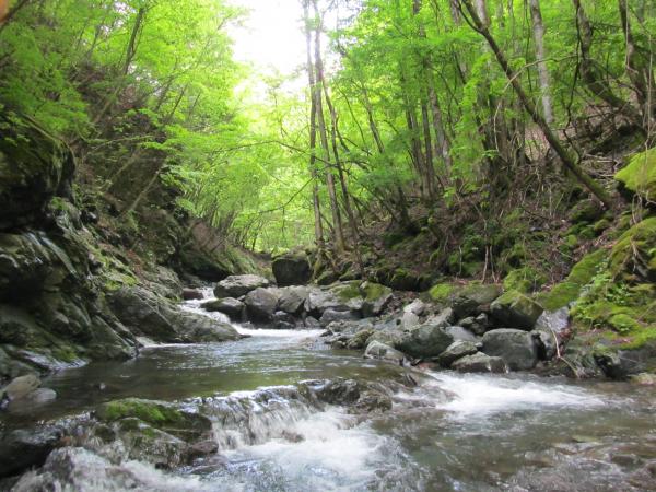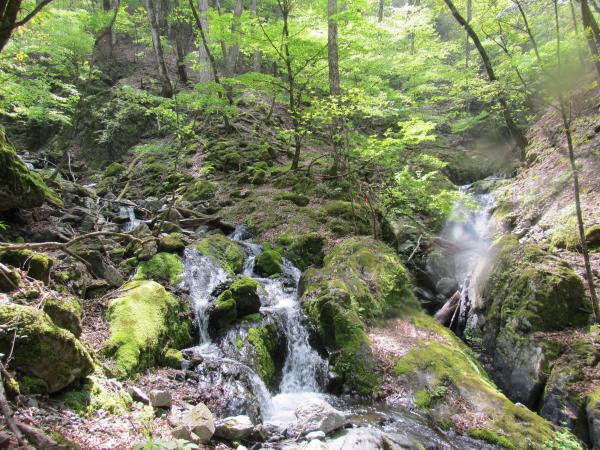 2つ目は南面の「青岩谷」。豊富な湧水をもち、水量豊かなこの沢は青岩鍾乳洞を経て、後山川となります。