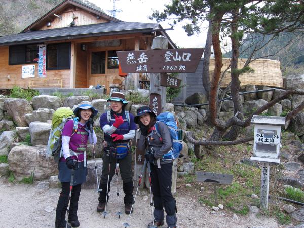 - 初日 中房温泉(40分)第一ベンチ(40分)第二ベンチ(30分)第三ベンチ(90分)合戦小屋(80分)燕山荘(30分)燕岳(30分)燕山荘