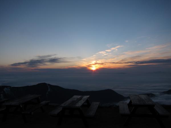 この日は金冠日食があった日で、日食観測など楽しみながらゆっくりと登りました。