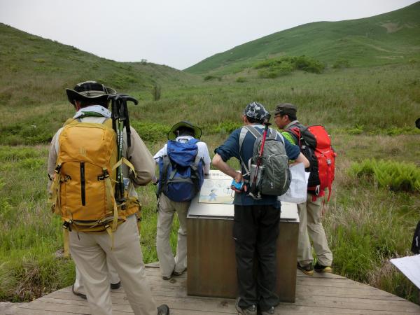 - 吹上峠(50分)大平山(80分)貫山(40分)広谷湿原(20分)中峠(10分)ライオン岩(25分)キス岩(40分)吹上峠 ※ 講習・休憩含め約6時間