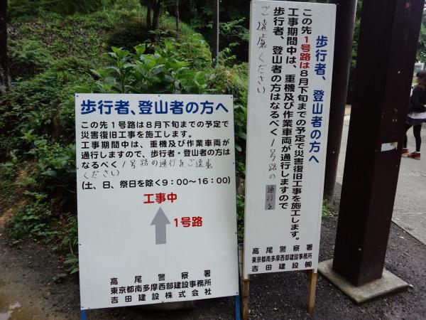 4号路も一部通行止めです。詳しくは高尾ビジターセンターホームページにて。