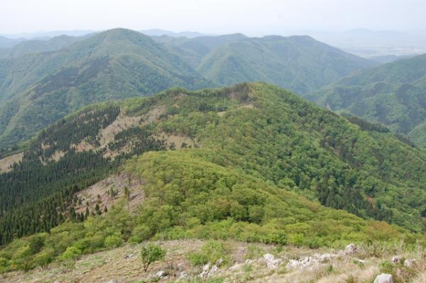 山頂からは伊吹山、連なる鈴鹿の山々、琵琶湖の眺望が楽しめます。