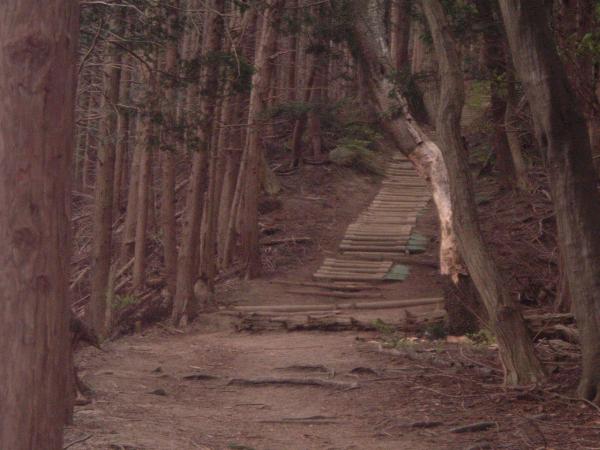 - 天狗谷道に短い鎖場がありますが、危険というほどではありません。下山道の水越峠までは少し急な丸太階段や、急坂がありますのでゆっくり行きましょう。