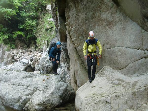 赤滝から入溪する踏み後を見失ってしまい懸垂下降をすることになってしまいましたが、それ以外緊張するような場面もありませんでした。