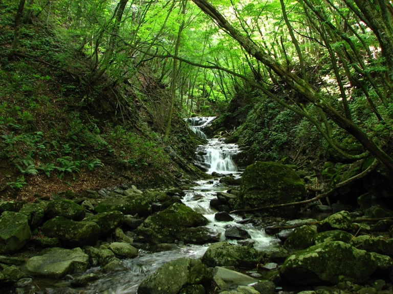 沢沿いの遊歩道で、滝や渓流が美しかったです。