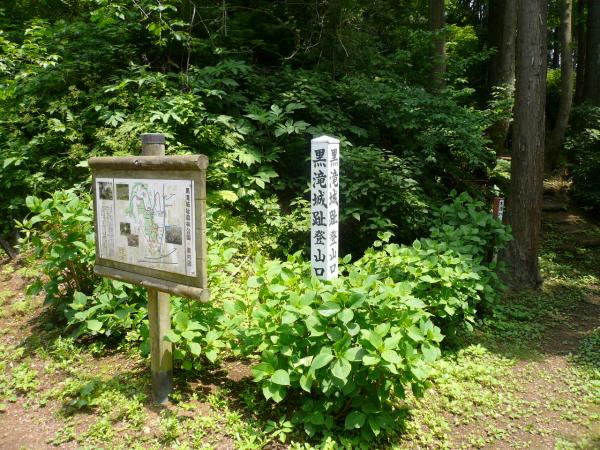 - 剣ヶ峰登山口-10分-剣ヶ峰頂上-10分-剣ヶ峰登山口-10分-黒滝城址-10分-大蓮寺曲輪-30分-搦手登山口-60分-剣ヶ峰登山口