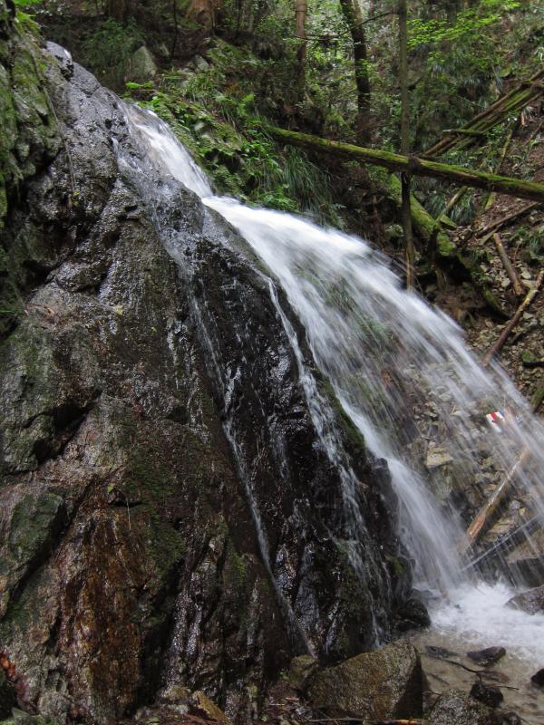 いくつかある滝群も残置のトラロープや隣接する登山道を使うことで