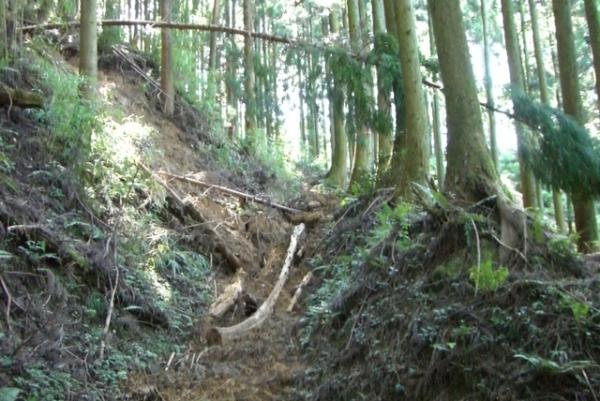 大雨の影響で崖が崩れている箇所や倒木も少しあります。