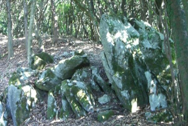 山頂から御神所岩を通っての下山道は少し荒れています。