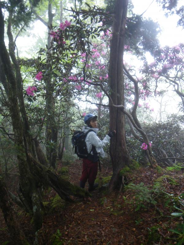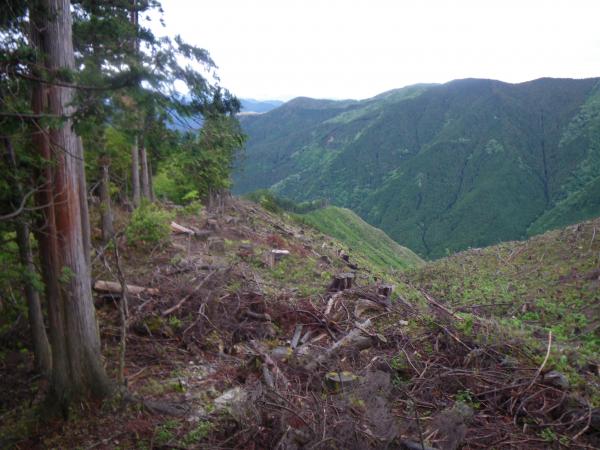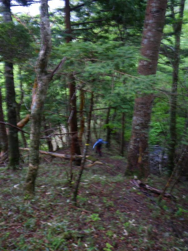 下山ルートは稲村小屋から洞川温泉かクロモジ尾、もとに戻るなら稜線から上サンコウジ谷を下降する。今回は車2台なので、クロモジ尾を選択したが、思ったより道がはっきりしていた。ただし、伐採地で曲がり損ねたので、時間を食ってしまった。ガスが深い場合は迷い易い分岐点。マーキングはまめにあるが、この場所だけ、わかりにくい。また岩本谷橋へあと数mで降りれる箇所で急に道が悪くなり、更に崖くずれで、道がなくなり、強引に木を頼りに、滑っておりた次第。下山で一気に力尽きた。