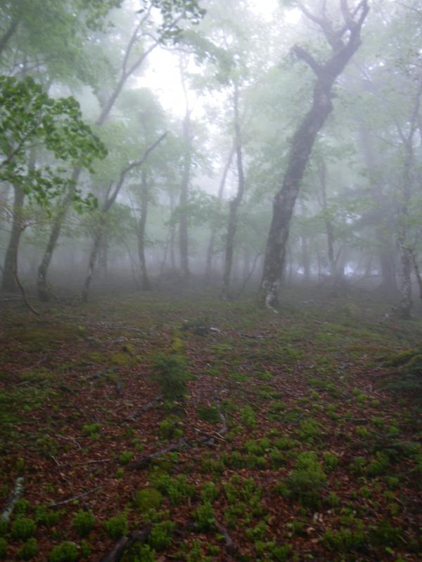 ⑦つめは左、左へ進み、水がなくなれば、適当に登れそうな場所を見つけて、沢を離れ、左側でも右側でも登ると、程なく稜線に出ます
