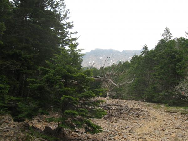 一日目は行者小屋までの林道&樹林帯歩き。沢の音を聴きながら、黙々と歩いていると