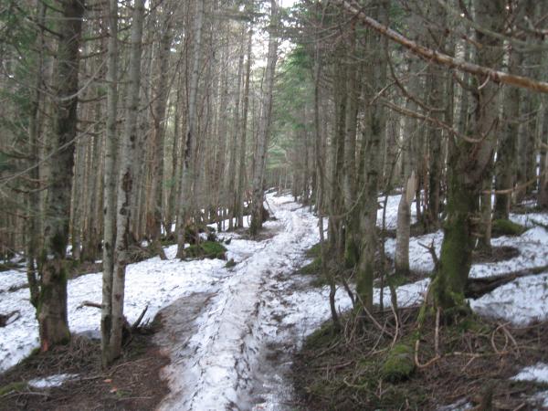 - ○行者小屋~赤岳鉱泉、赤岳鉱泉~硫黄岳、文三郎尾根の樹林帯には残雪が