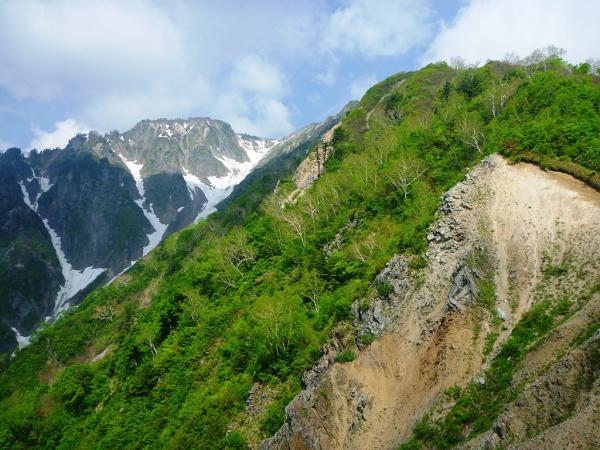 山頂から少し西へ場所を移すと、別山、奥三方岳の展望が良いです。