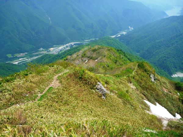 ここからは山頂を見ながら細い尾根を登っていきます。