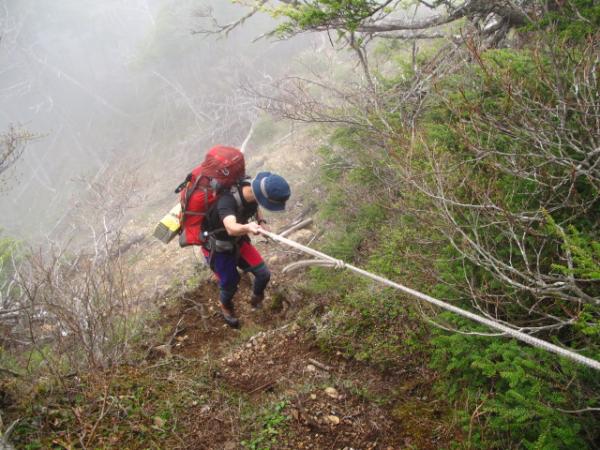 確かに崩落個所があったりロープを伝って下降したり、後半は心臓破りの急坂が続きます。