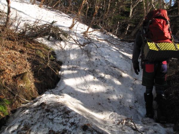時折、残雪をトラバースする箇所がでてきますが、トレースをうまく歩けば問題ありません。