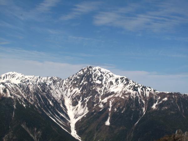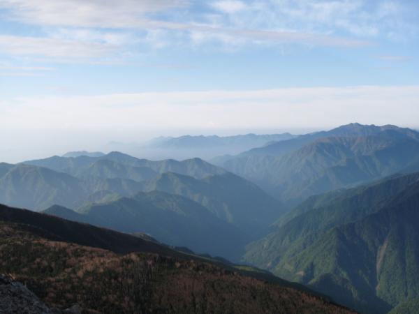 北岳仙丈甲斐駒南アルプス南部多分聖岳、富士山、八ヶ岳、遠くに中央アルプス