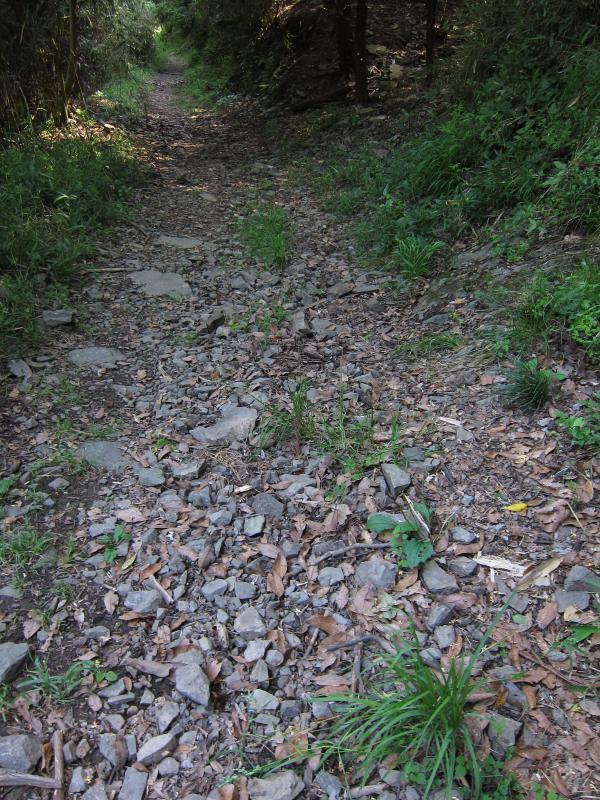 井関峠から行者堂との分岐までは大きな石が多く非常に走り難いため