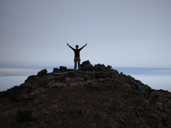 苦労して、何とか山頂に到着、既に10時間ぐらい行動しているのでかなりバテました。