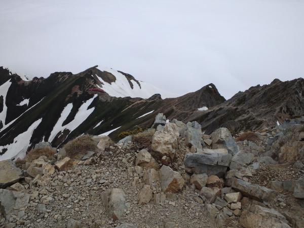 鹿島槍まではスムースに夏道を行きます、八峰キレットまでは、所々雪があり、階段も
