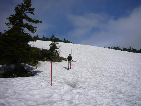- 水場までは歩きやすい夏山。水場より上は残雪・目印に赤テープ有り。樹林帯は迷わない様にしっかりルートを確認して下さい。