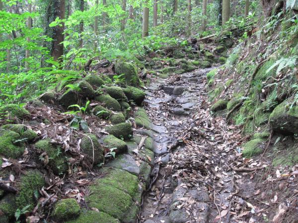 - 草木や苔がうっそうと生い茂って日当たりも良くないので、少しぬかるんでいました。所どころ階段が続くため、足を滑らせないよう注意が必要です。標高は低いので初心者の方でも気軽に登ることが出来ます。