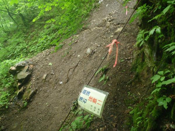 ほとんどが山の斜面に付けられた道で、片側が沢になって切れ落ちている場所が多く気を抜けない場面が続きます。間違っても沢側に転倒しないように!
