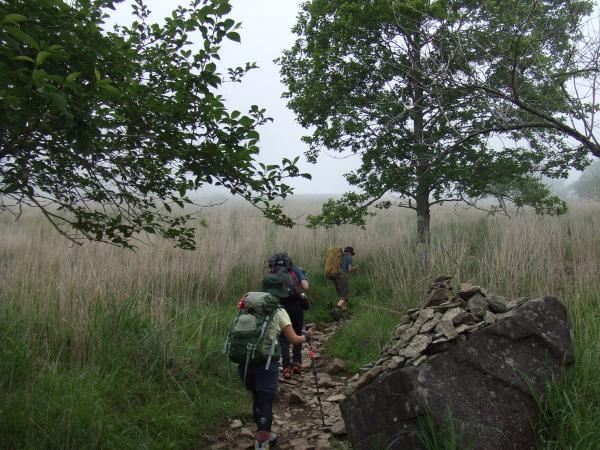 下山道に使った黒金山方面に向かって進み、高原ヒュッテに出る道は、特に滑りやすいので注意。