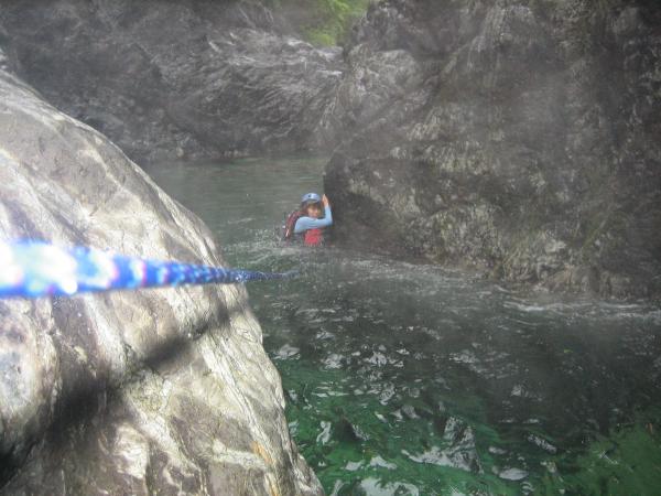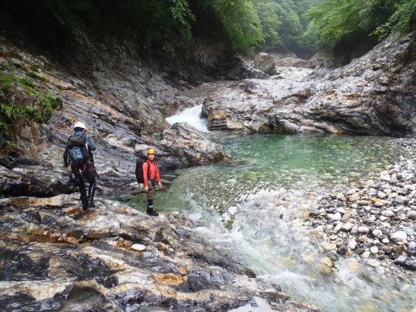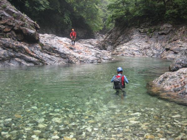 水はやはりきれいで、淵が多いので8月の暑い時期がいいかな。泳ぎが苦手の人はライフジャケット、今回ならザイルも長淵用に50mあったほうがいいと思いました。