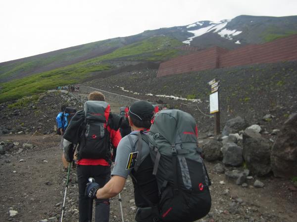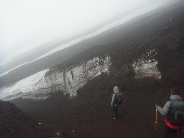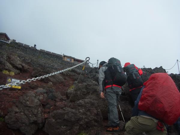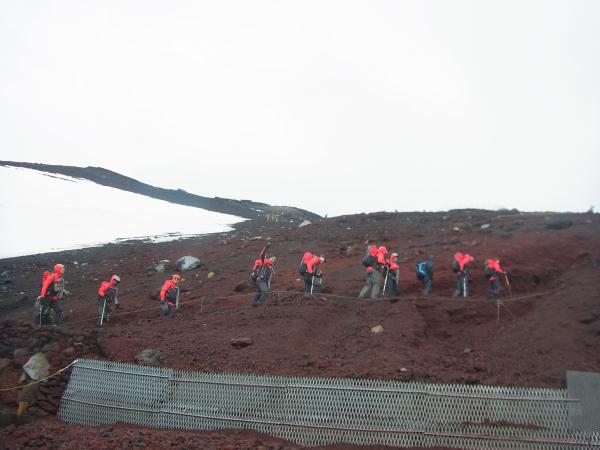 - 吉田口はちょうどこの日から8合目の山小屋「元祖室」上の登下山道分岐点から六合目安全指導センター上の下山道が使用可能になりました。