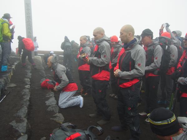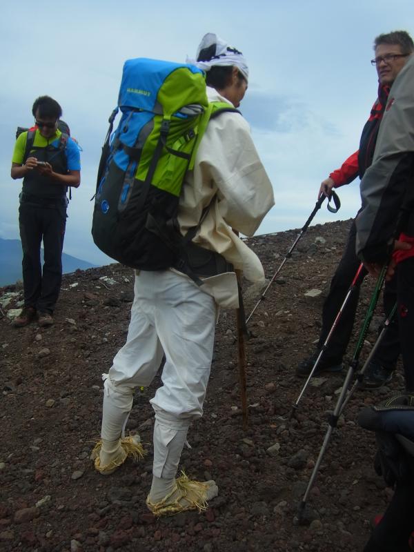 また五合目から僧侶の方々や昔ながらの富士講スタイルでの同行、八合目「太子館」の若旦那様が先導と、記念登山ならではのパーティーを組んでの道中でした。