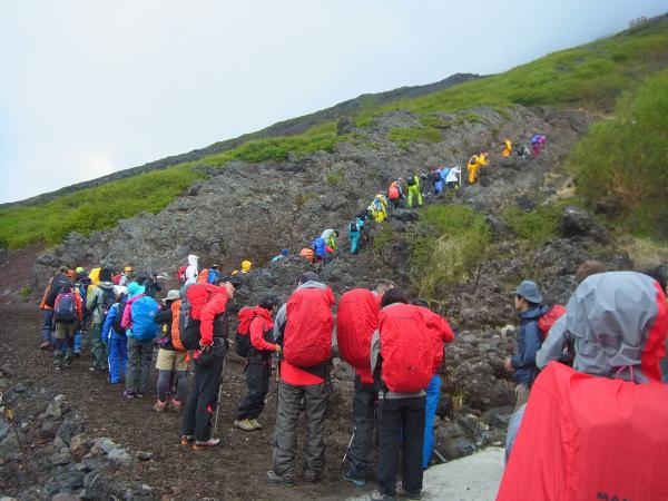 七合目からは岩がゴロゴロあり渋滞することが多いです、止まると身体が冷えますのでウエアの着脱でこまめな調節を。