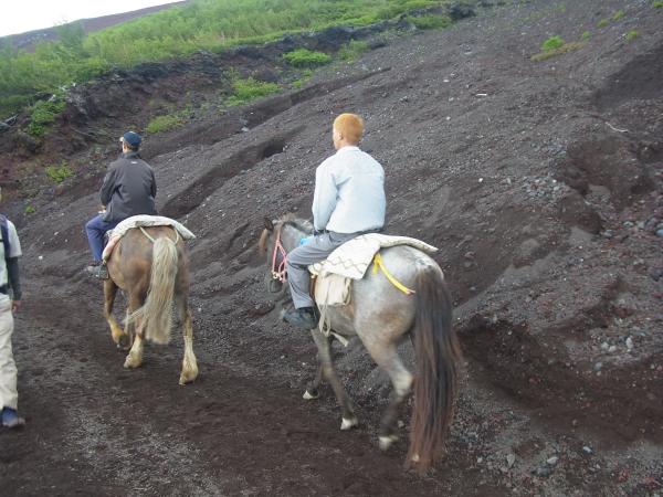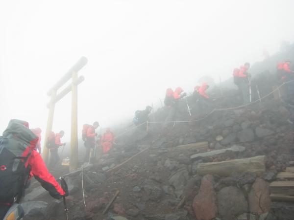 - スバルライン五合目12:20ー13:05六合目ー14:10七合目ー16:00八合目太子館(泊)AM4:00発ー05:15本八合江戸屋05:35発ー御来光館05:42ー06:34富士山頂上浅間大社奧宮06:50下山開始ー08:00須走口分岐ー09:12七合目公衆トイレー10:12五合目