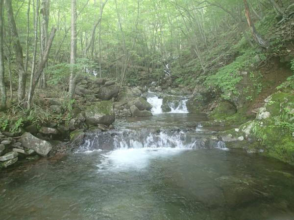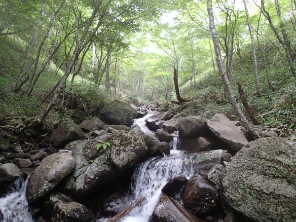 登攀対象となるような滝はありませんが、美しい小滝とナメが続きます。