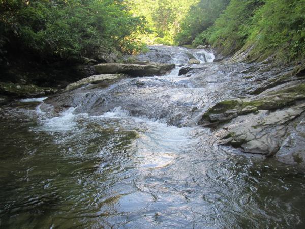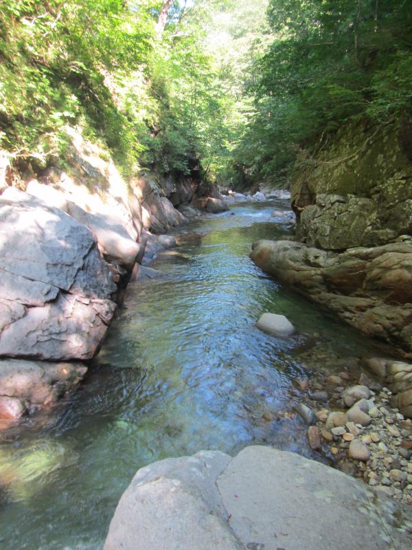 多くのパーティーは稜線から枝沢を下降し、核心部を楽しむスタイルをとるようですが、私は山の大きさを知るためにも下流から源流まで歩く長大なルートを選択しました。