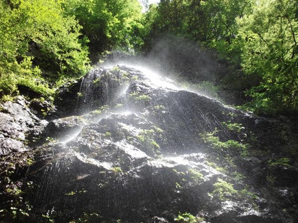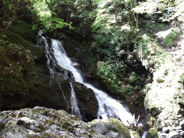 - 林道ゲート→(20分)→鉄橋・入渓地点→(70分)→しずくの滝→(20分)→牛呼滝→(40分)→二俣・植林小屋→(50分)→林道ゲート