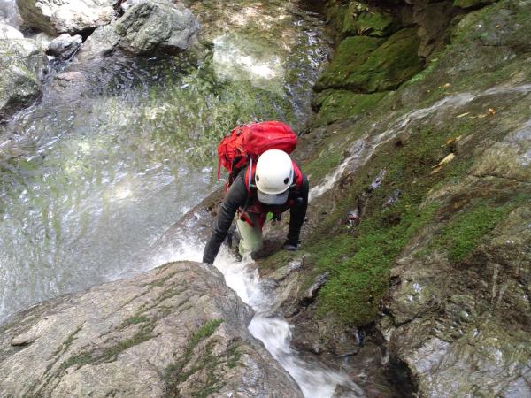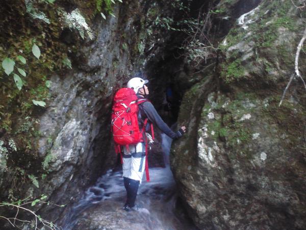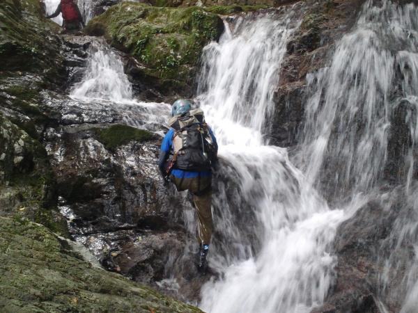 しかし同行の仲間が、準備万端なので、今回は自身初、「空身」で沢登りを楽しみました。